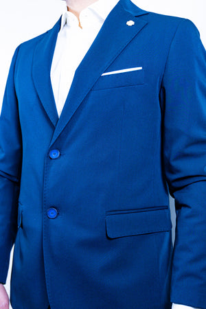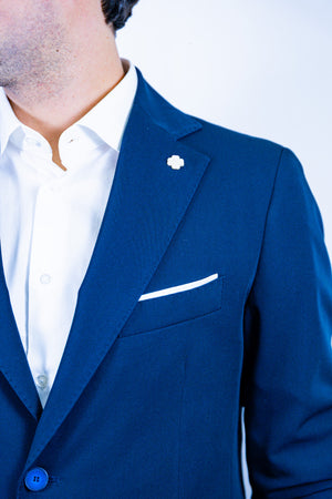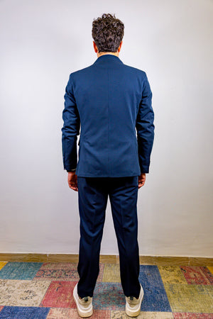 Abito monopetto over-d 2 bottoni con tasche a filetto, doppio spacco sul retro della giacca e pantalone sartoriale.