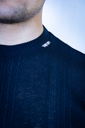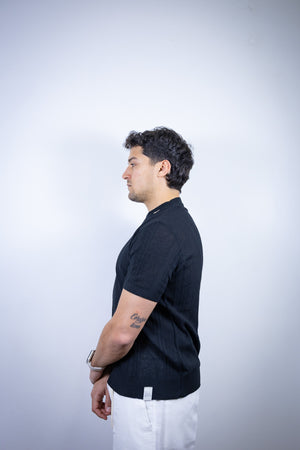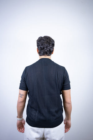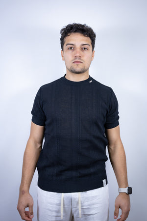 T-shirt girocollo bl11 fantasia leggermente traforata con dettaglio cuciture colorate sul colletto, logo applicato sul fondo.