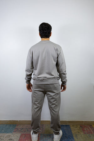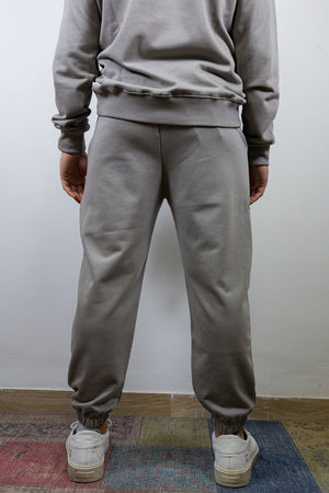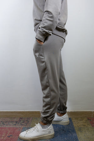 Pantalone tuta jogger berna in misto cotone, color grigio ferro, con elastico in fondo e stampa logo frontale.