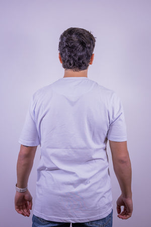 T-shirt paricollo bianca over-d con logo piccolo applicato sul lato della maglia.