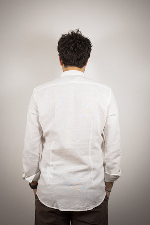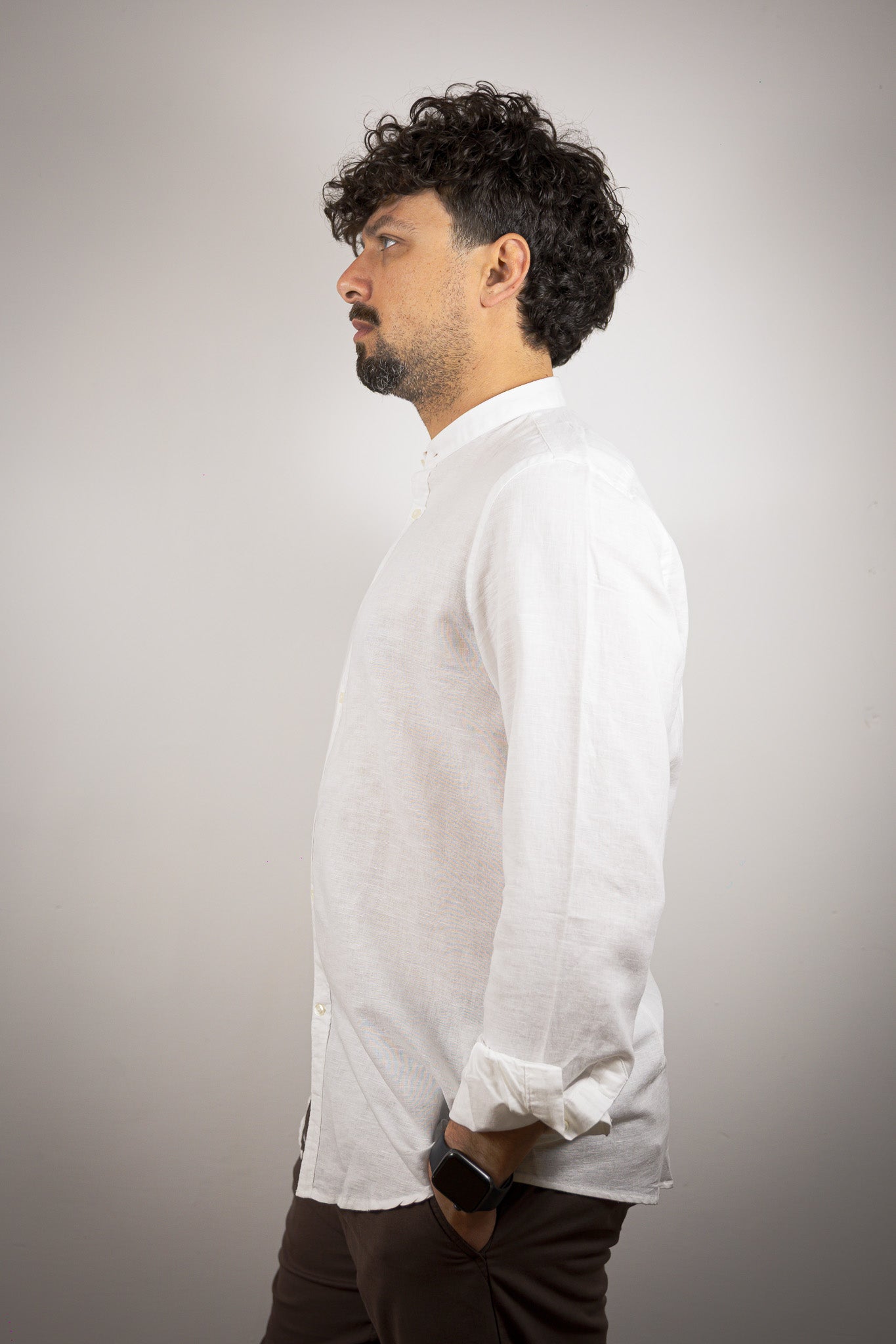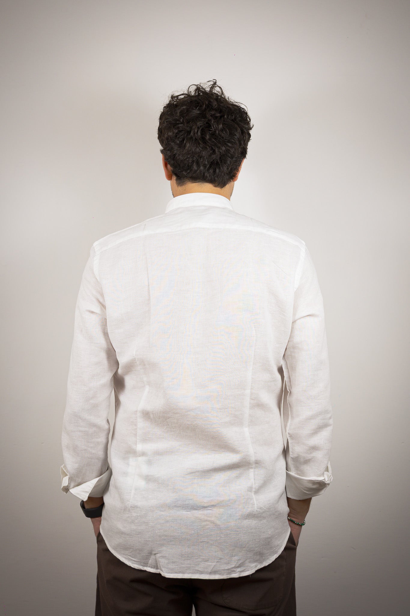 CAMICIA COLLO COREANO MISTO LINO OVER D BIANCA