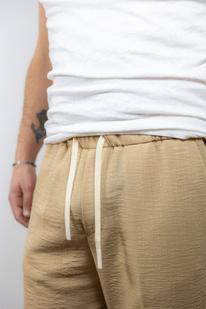 Pantalaccio antifit over-d color beige con vestibilità morbida con elastico in vita e tasca a toppa sul retro.