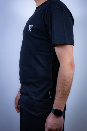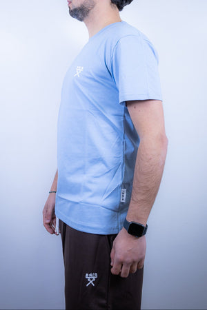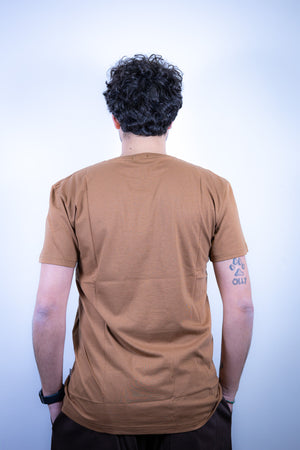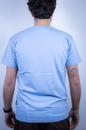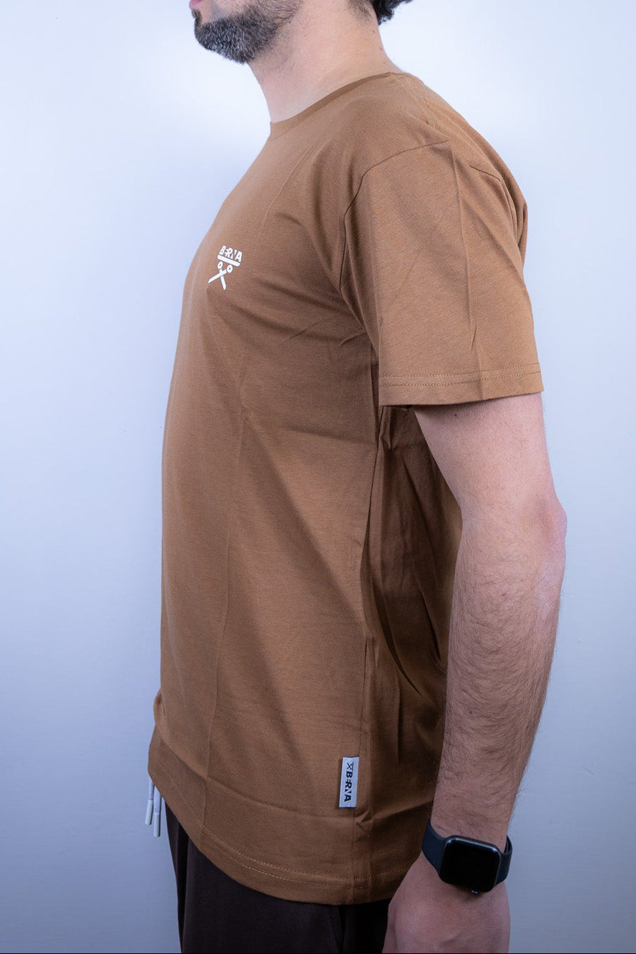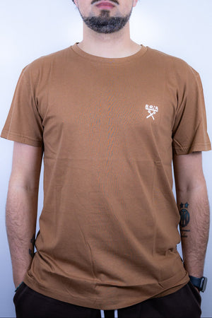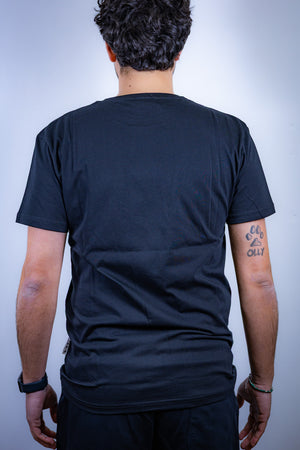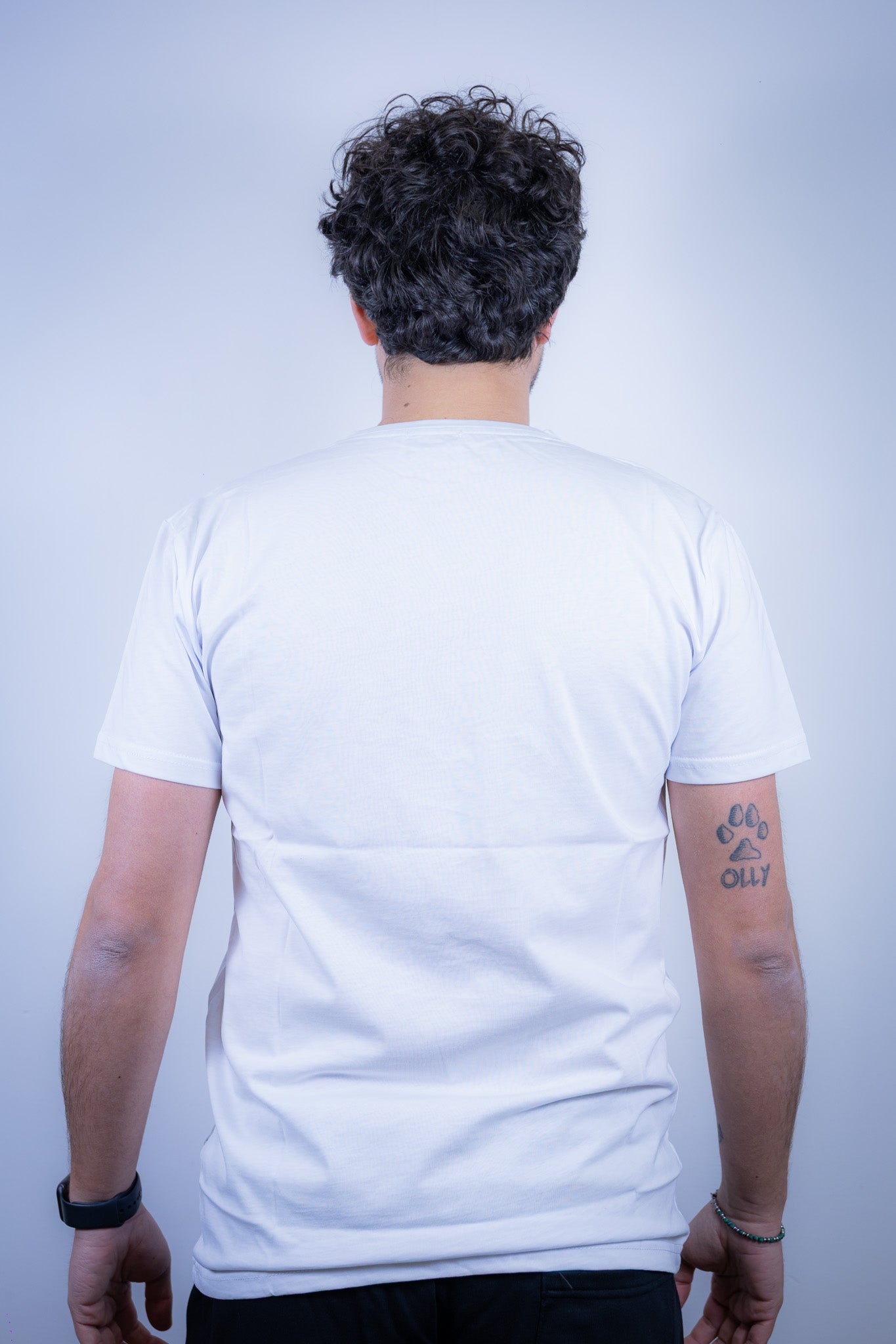 T-shirt girocollo berna in puro cotone con logo stampato lato cuore, fondo dritto con bandierina logo applicata lateralmente.