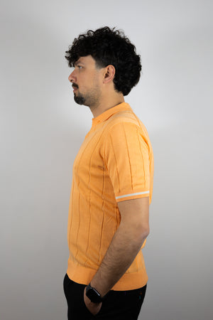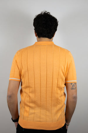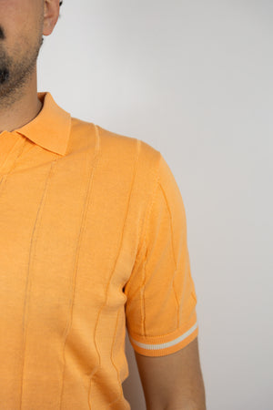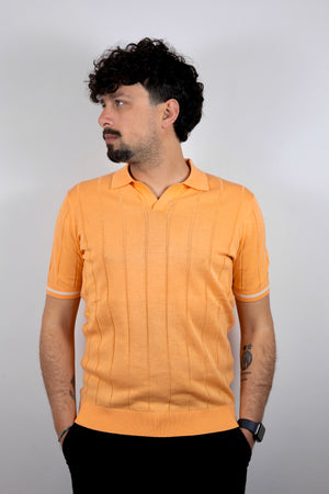 Polo in cotone over-d color pesca con collo derby, dettaglio a bande bianche sulla manica.