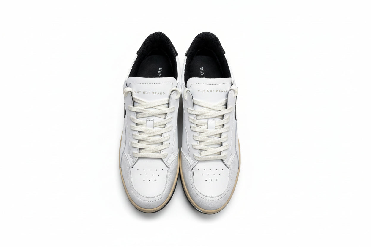 Sneakers in pelle why not brand con ricamo logo nero, laccio bianco tono su tono e suola in gomma.